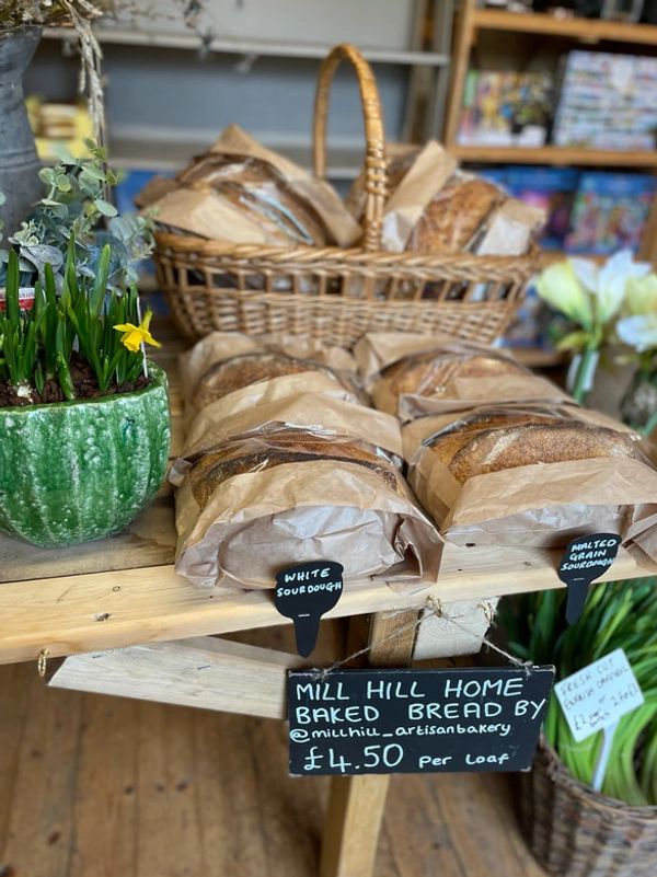 Our sourdough bread is hand crafted by an award-winning artisan baker in Mill Hill. Baked in her very own micro bakery and then delivered to us every Tuesday, Friday and Saturday, with speciality baguettes and focaccia slices delivered on late Saturday mornings.